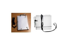 Cuaderno con pluma, post it, separadores adhesivos, porta tarjetas/credencial, medidas: 17,3*21cm color blanco transparente, 60 hs