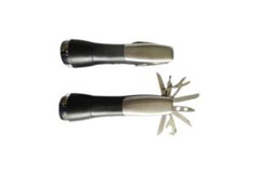 color negro con plateado, viene en caja, tiene 4 luces led blancas y una roja, herramienta multifuncional, utiliza 3 pilas AAA *no incluye pilas